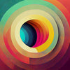 Mutige geometrische Muster mit gestapelten Dreiecken in lebendigem Rot, Gelb und Grün erzeugen eine kaleidoskopische Symmetrie. Farbverläufe und texturierte Oberflächen bringen dynamische Tiefe in die abstrakte Komposition.